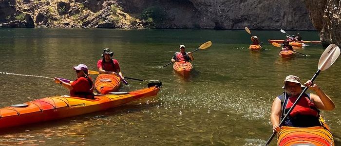 Join Blazin’ Paddles on a 4 mile round-trip tour of the beautiful Black Canyon. Our round-trip shuttle service will pick you up from your Las Vegas Strip hotel in our comfortable Mercedes Sprinter, so no need to stress about transportation! Once you’ve arrived, you’ll start your adventure off at Willow Beach where your guide will get you prepared for the day ahead and fitted into your kayaks. Your guide will lead you through the Colorado River into Black Canyon as you’ll scour the banks to be the first to spot the Desert bighorn sheep or the rare sight of a Bald Eagle. Your first stop will be one mile into your ride at a historical overlook that will give you breathtaking views of the legendary Colorado River. Your guide will explain the history of the river and how it was utilized in past years. Finally, you’ll enjoy the beautiful green waters of the famous Emerald Cave before your group flows back to Willow Beach.